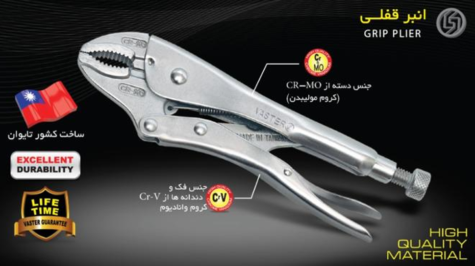 بدنه از بهترين CR-MO جهت بالاترين مقاومت حين كاربرى صنعتى■ روكش بدنه از جنس نيكل جهت استهلاك كمتر وعمر طولانى تر٥ فك ودندانه ها از فولاد كروم واناديوم تحت استاندارد آلمانOمجهز به سيستم مهره ى انتها جهت فشار روى قطعه كار٥ مقاومت سايشى بالا٥ ساخت كشور تايوان